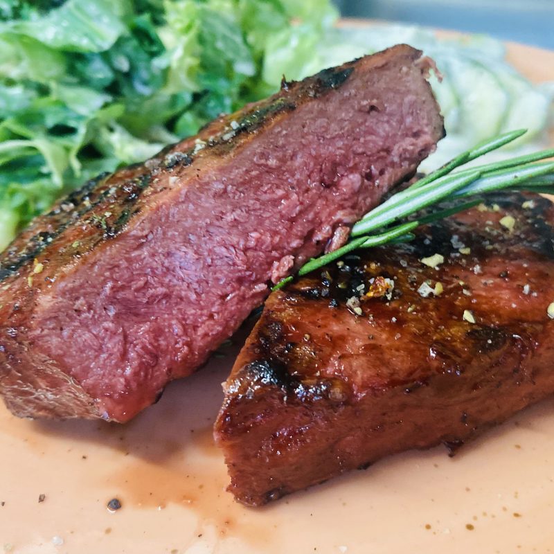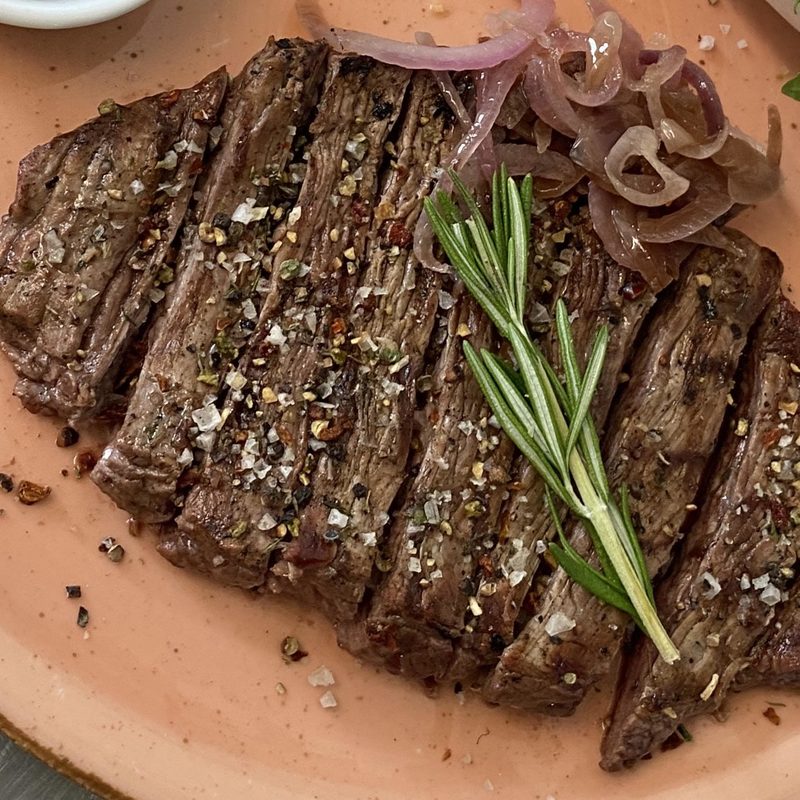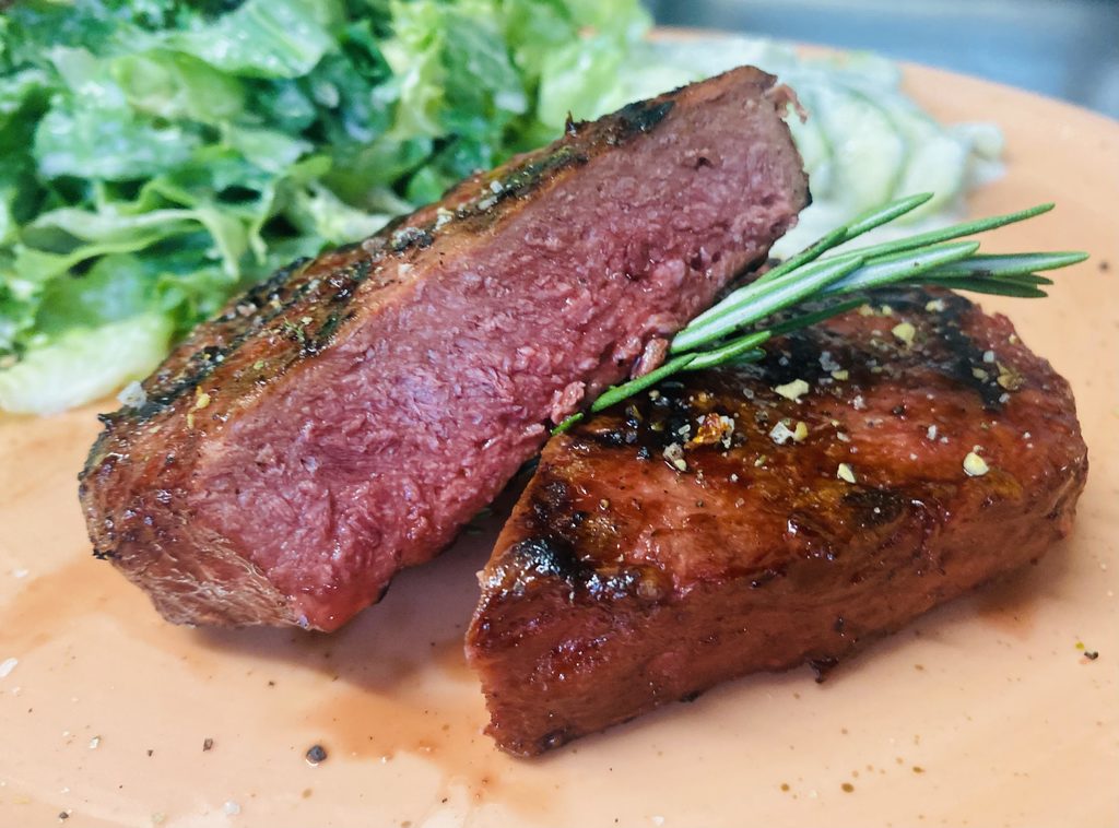 Various types of beef steak (such as roast beef, flank steak or ribeye) are grilled in the Texashouse medium rare, medium or done.