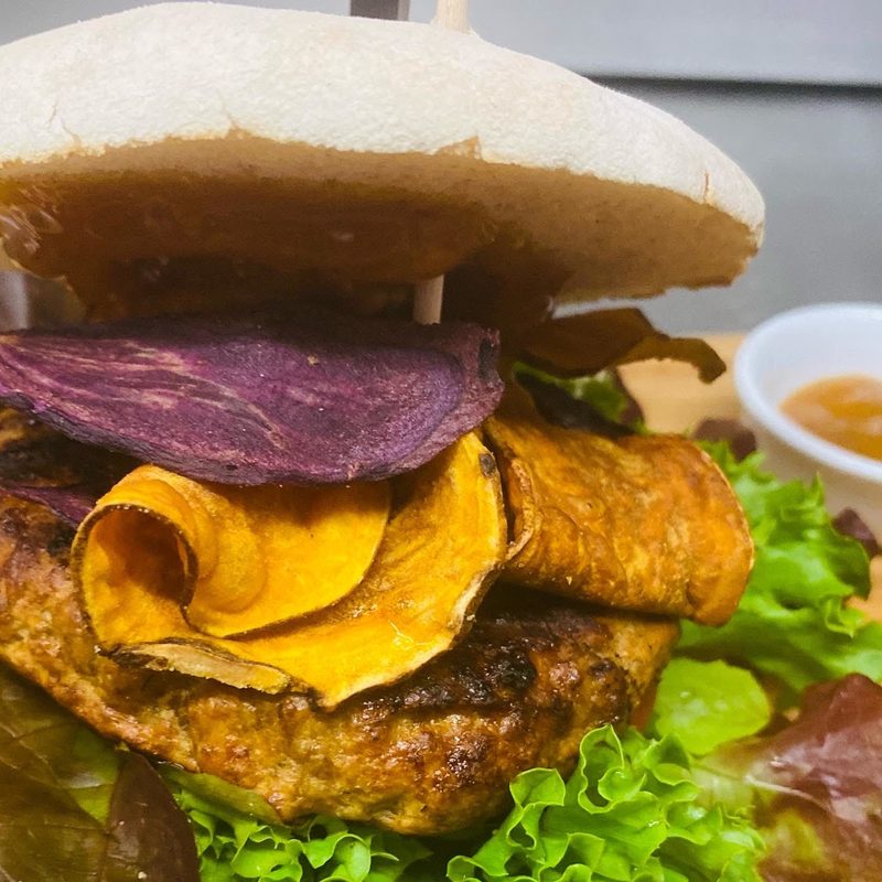 Various burger variants are available to order in different sizes (kid - mega). The burger meat (paddy) is made and produced in the neighboring town by a trusted butcher's shop.