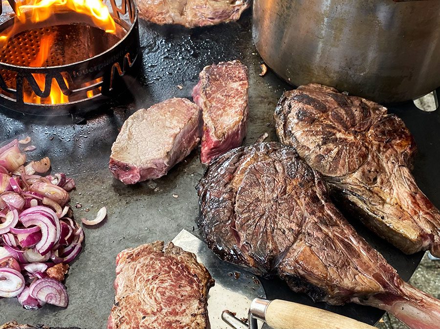 Guests also like to order a wood-fired pork steak or grilled chicken breast.
